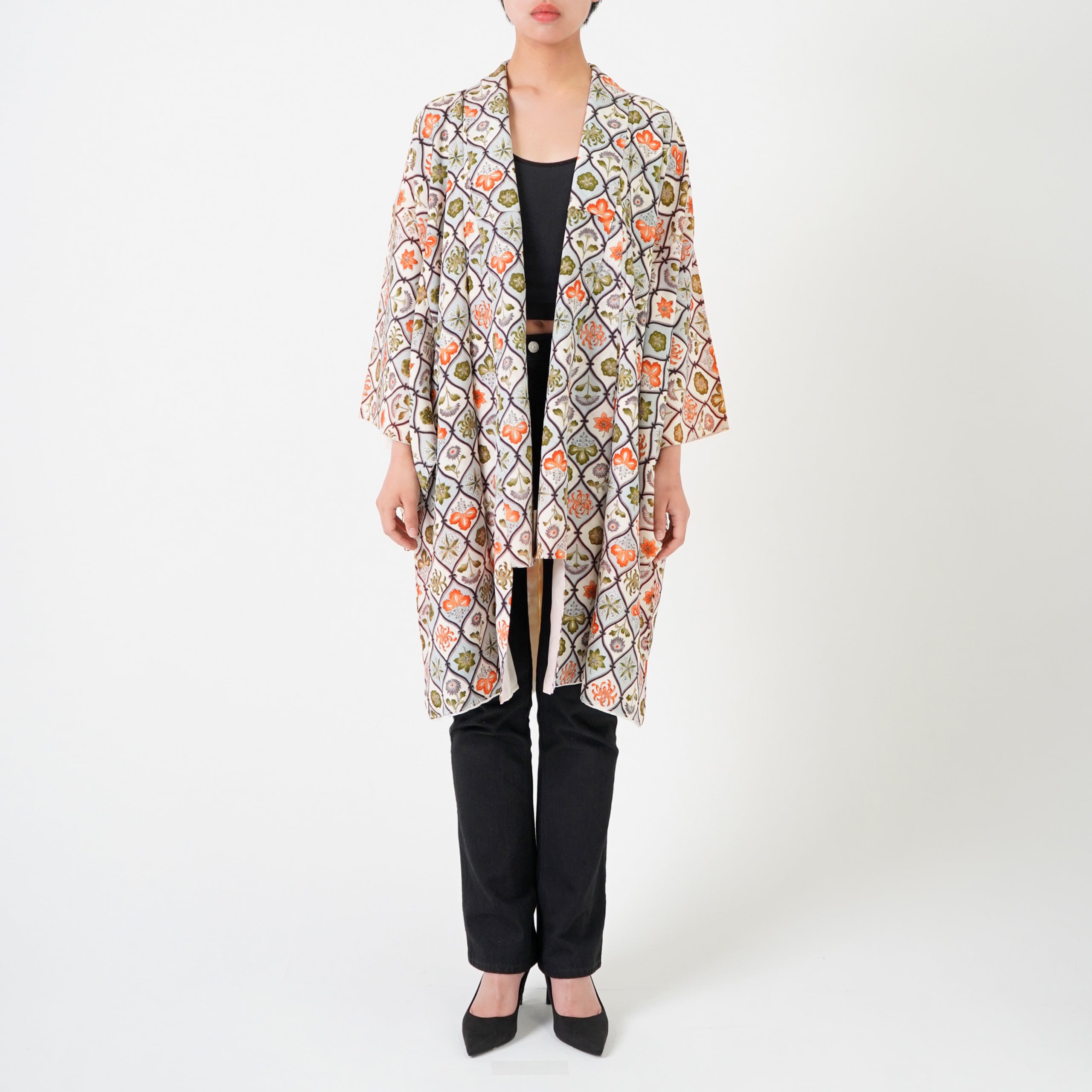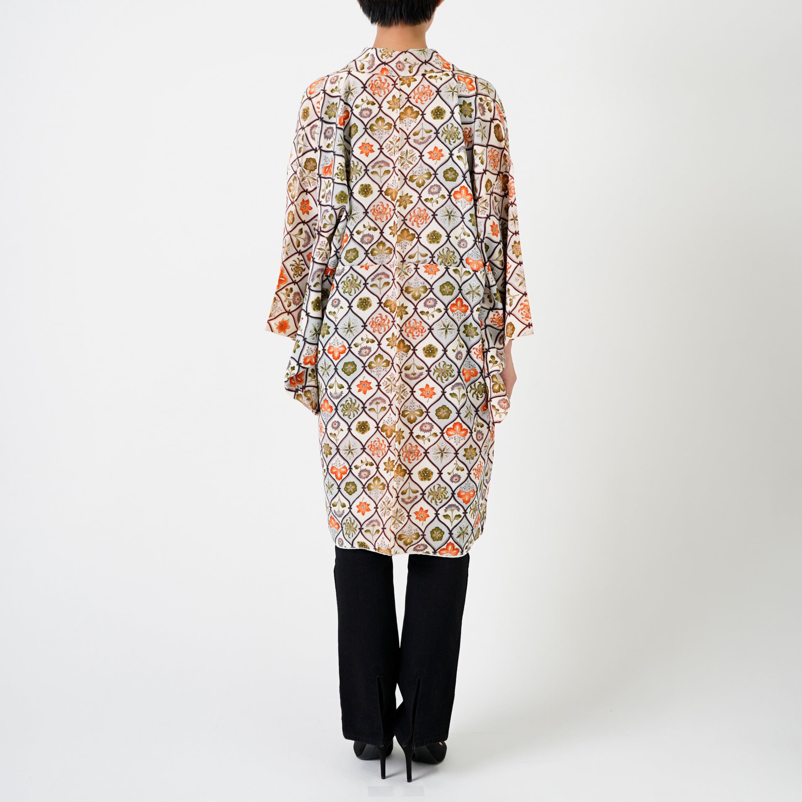 This item is handcrafted from a vintage kimono and should be handled with care. Due to the delicate nature of silk, it should not be washed in water. If needed, we recommend gently airing it in the shade in a well-ventilated area to refresh it.