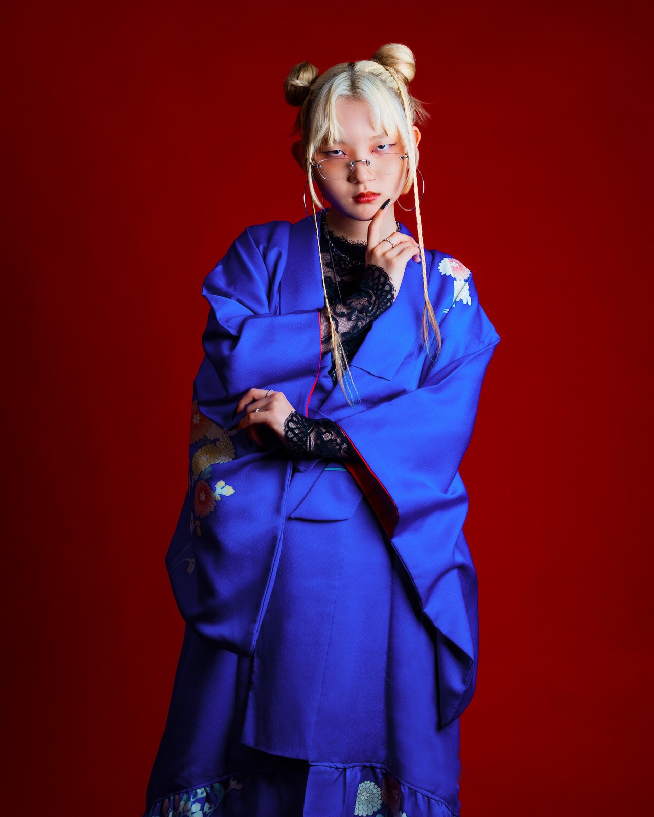 - This piece was made from a “Tsukesage” kimono — a semi-formal style traditionally worn for special occasions — giving it an elegant, refined presence.