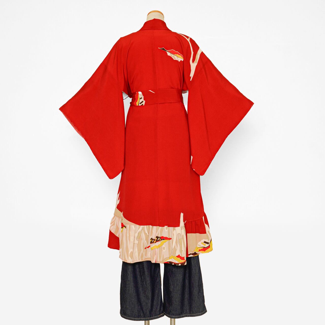 This item is a one-of-a-kind piece made by remaking and repurposing a second-hand kimono. Due to the nature of vintage fabrics, there may be slight imperfections such as small stains, fraying, or fading. These are not considered defects, but part of the garment’s character and history. Thank you for your understanding.