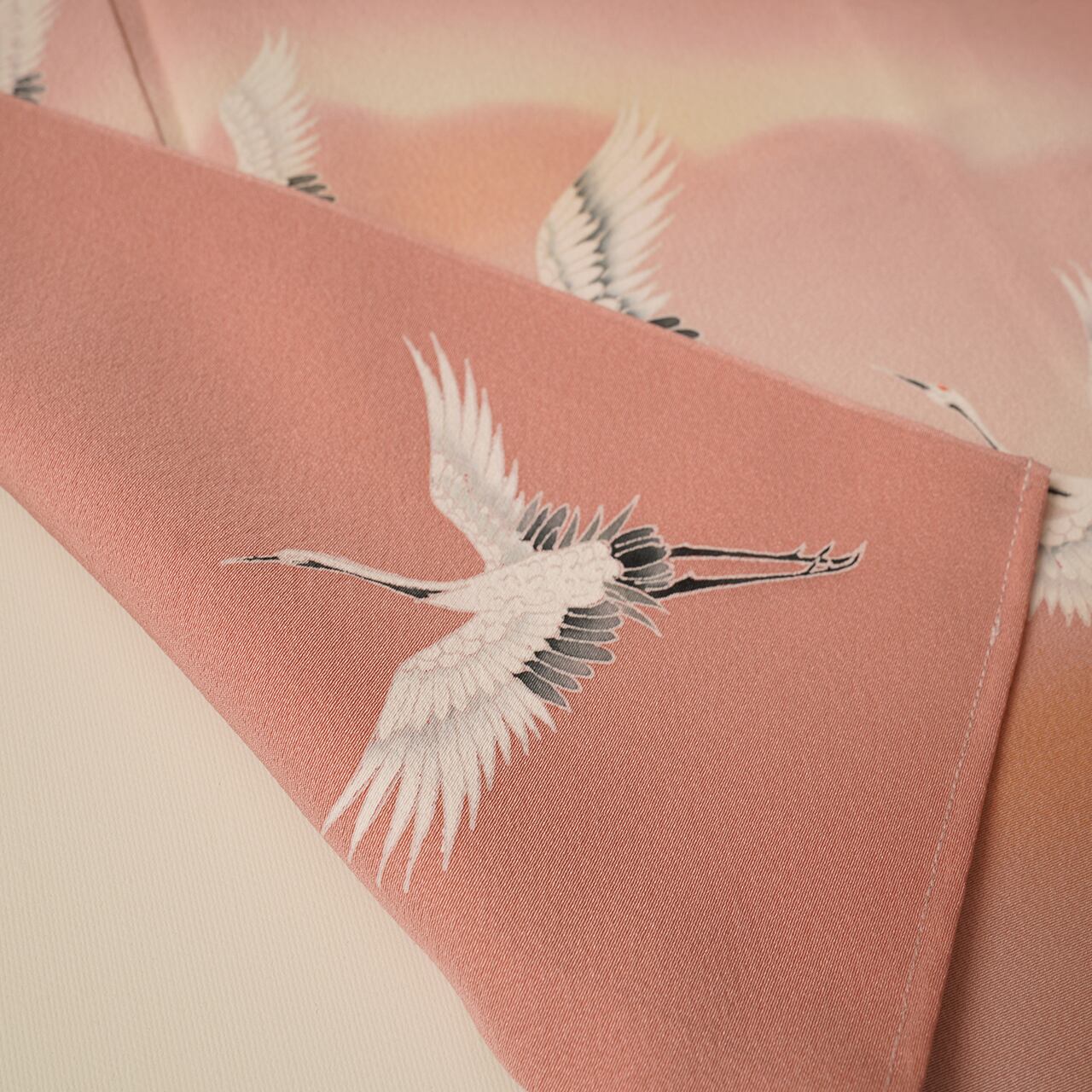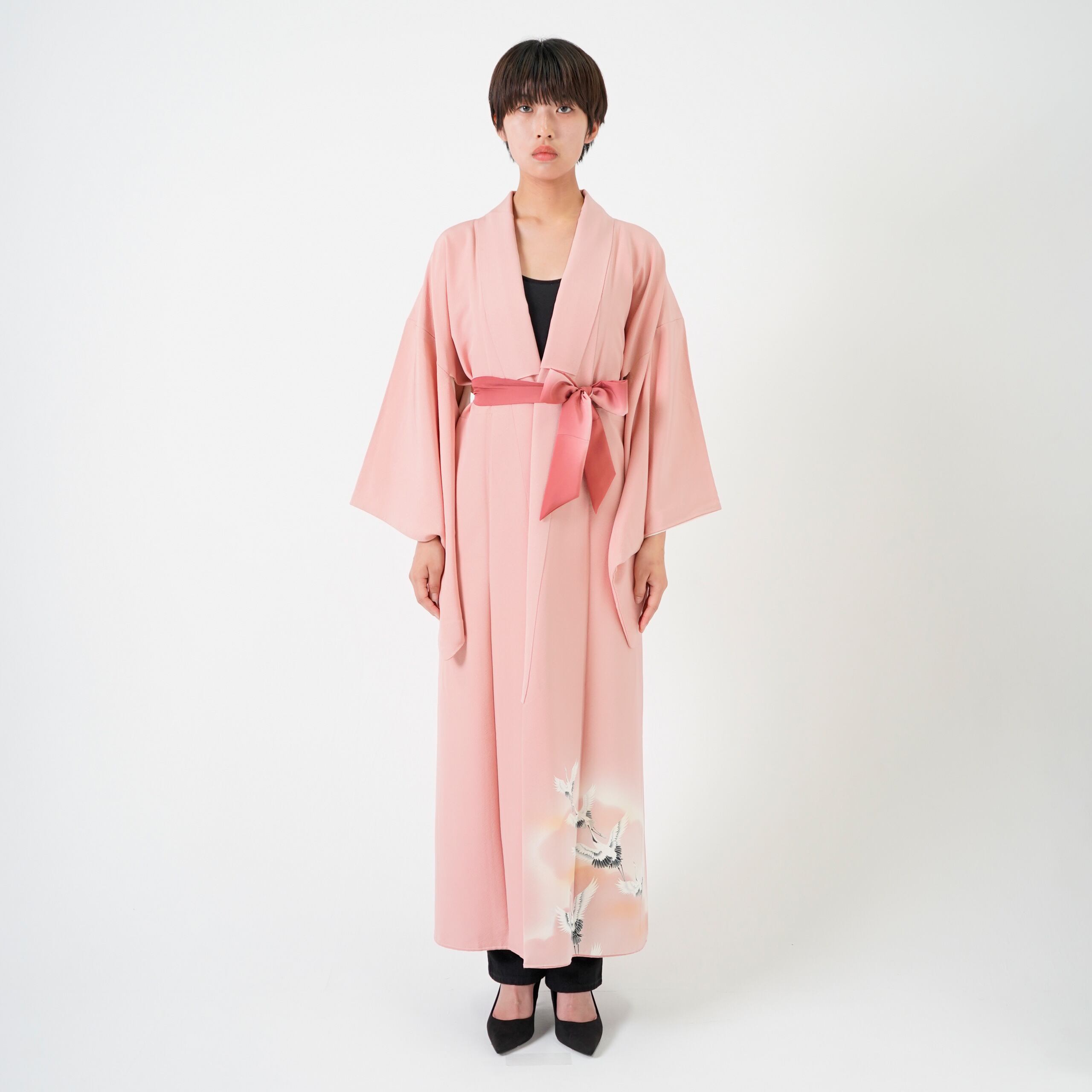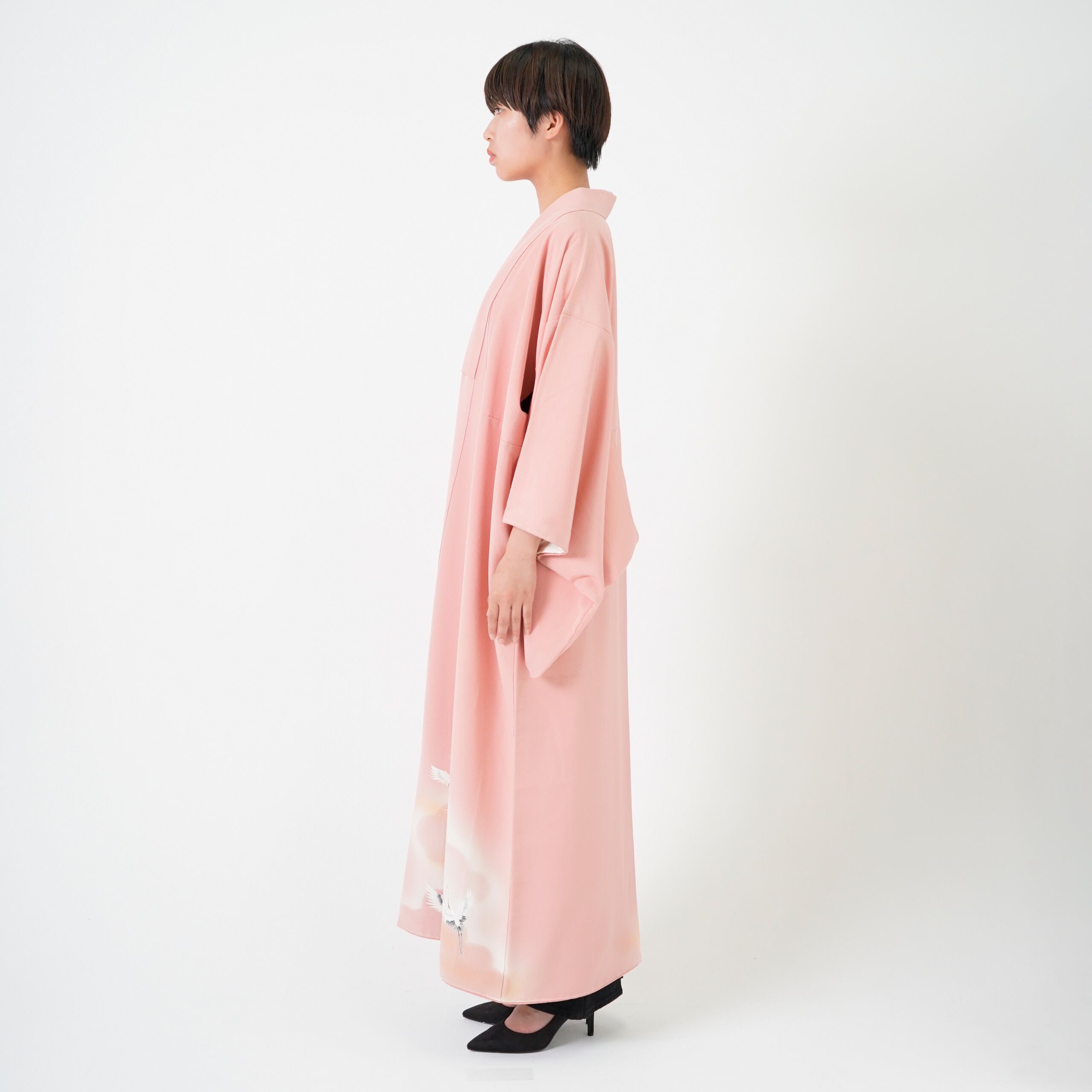 Pink Vine Motif Remake Robe Dress from Semi-formal "Houmongi" Kimono D018